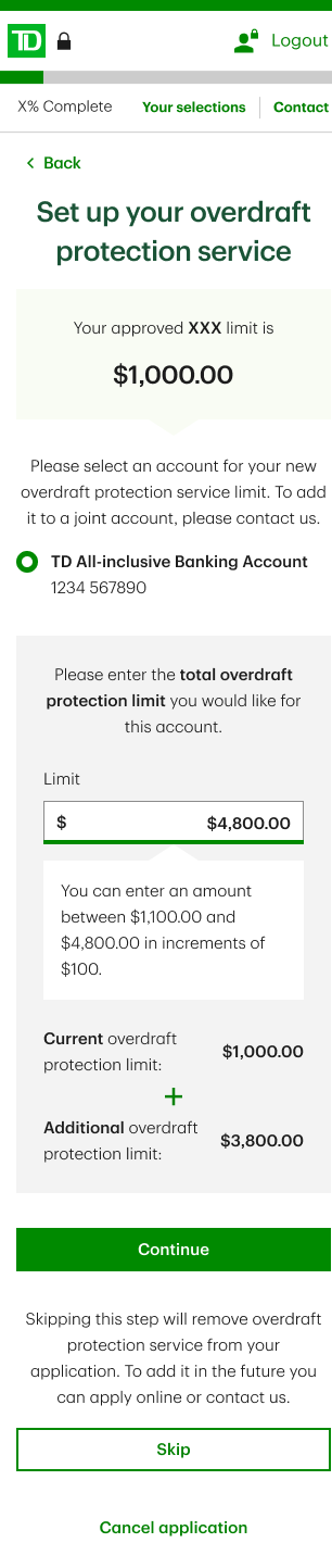 Credit-related flows are especially critical in this context, as they require clarity and trust. Although customers were eligible for overdraft protection, many were not completing the digital flow to select or adjust their limit. This project focused on redesigning that experience to reduce friction, improve clarity, and support confident decision-making in a sensitive financial moment.