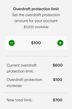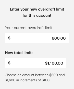 Existing screen and flow for selecting an overdraft limit were cognitively confusing