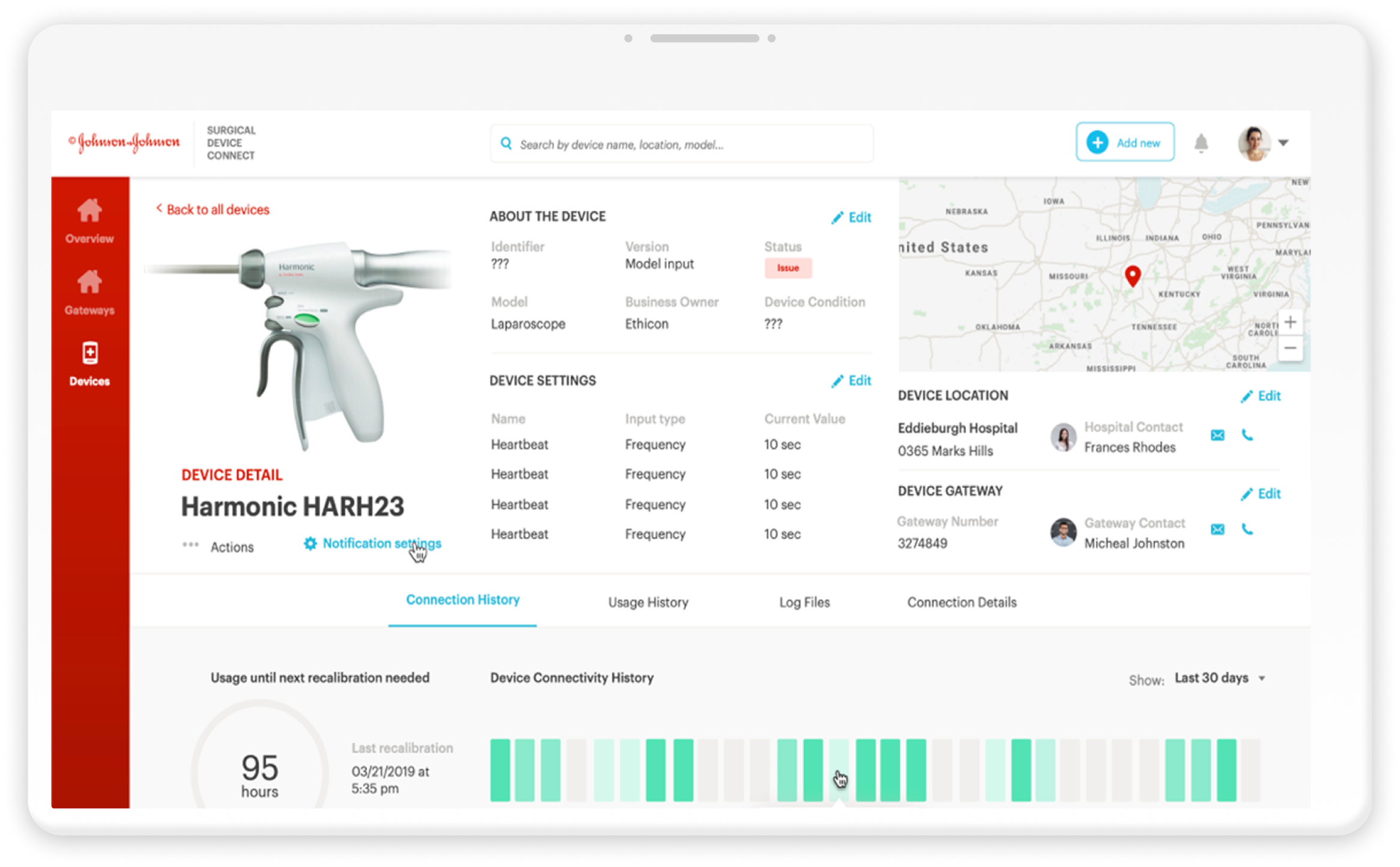 A platform UI PoC covering login, device management, device details, and notification settings